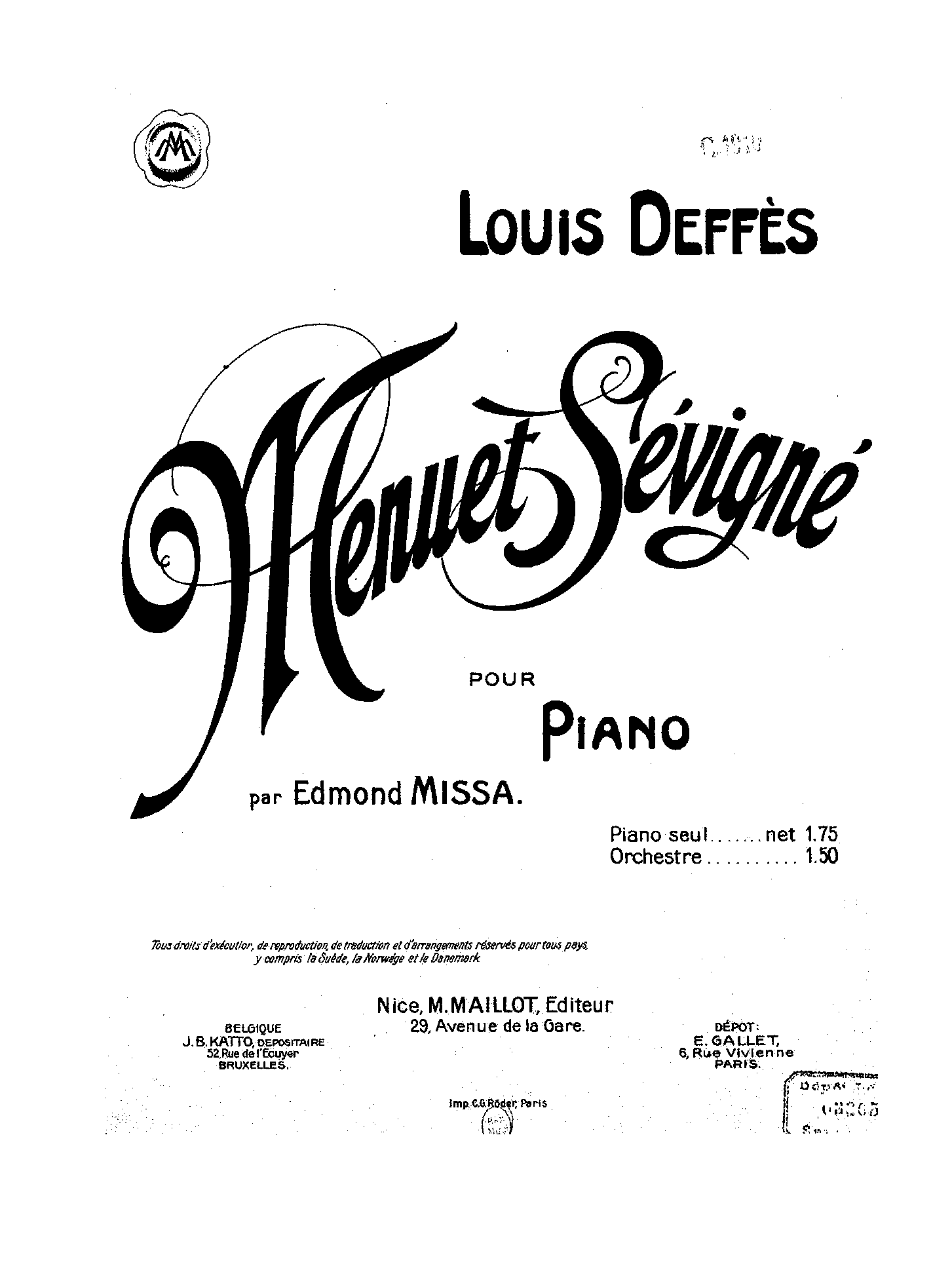 | First Publication | 1909 — Nice: M. Maillot |