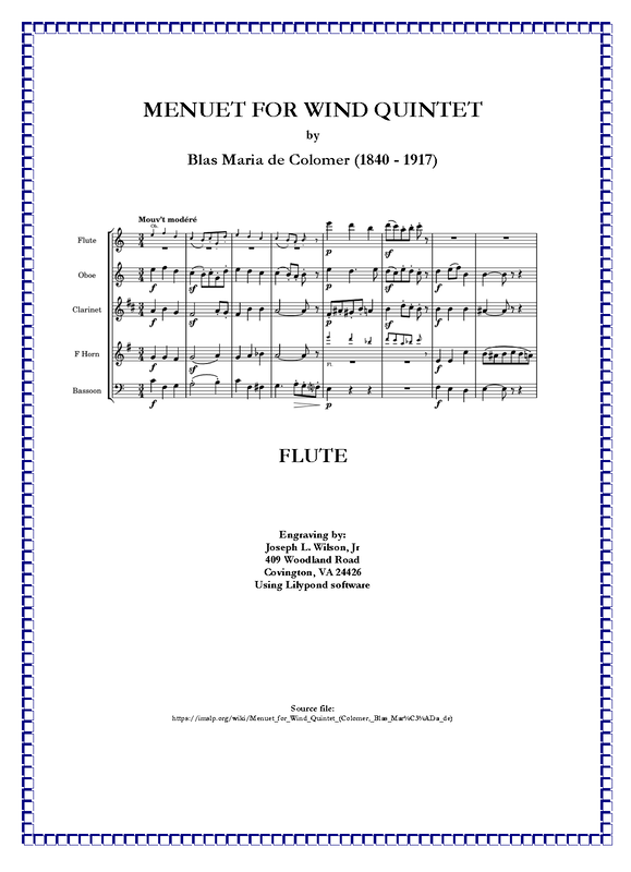 | Work Title | Menuet for Wind Quintet |