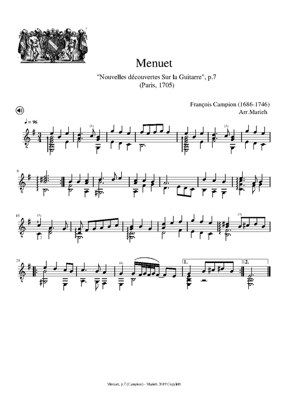 | First Publication. | 1705 in Nouvelles découvertes sur la guitarre |