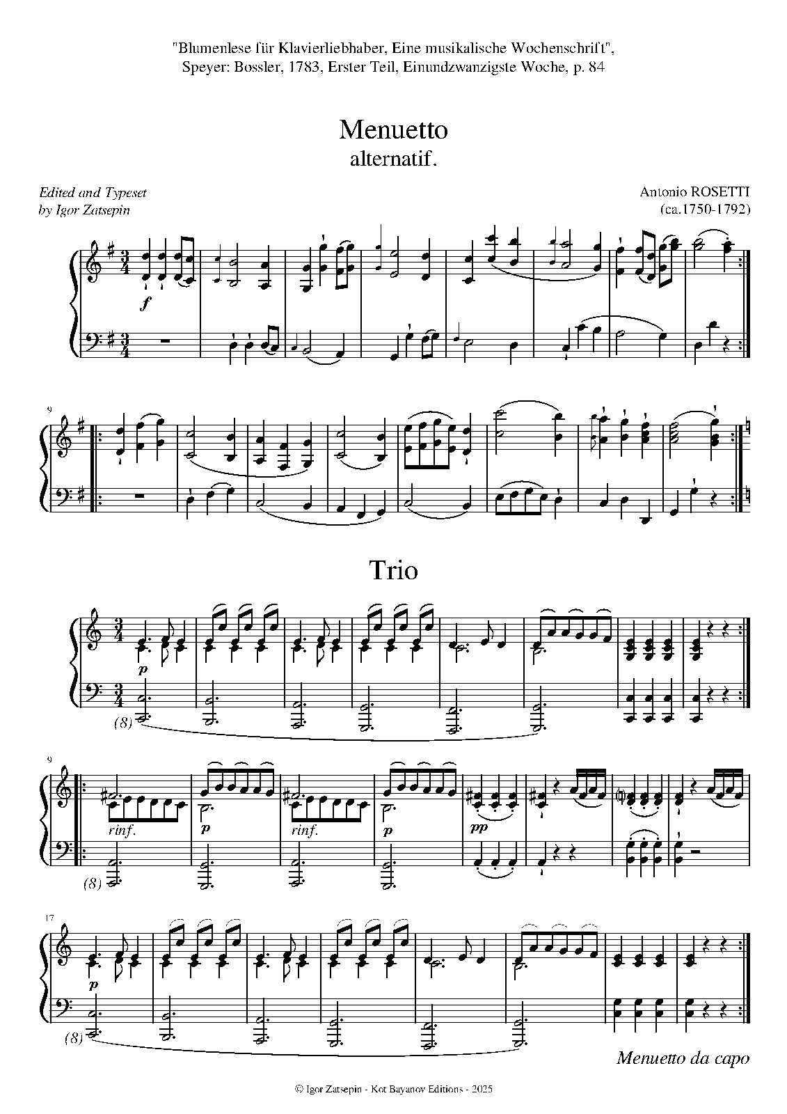 | Extra Information | "Blumenlese für Klavierliebhaber...", Speyer: Bossler, 1783 |