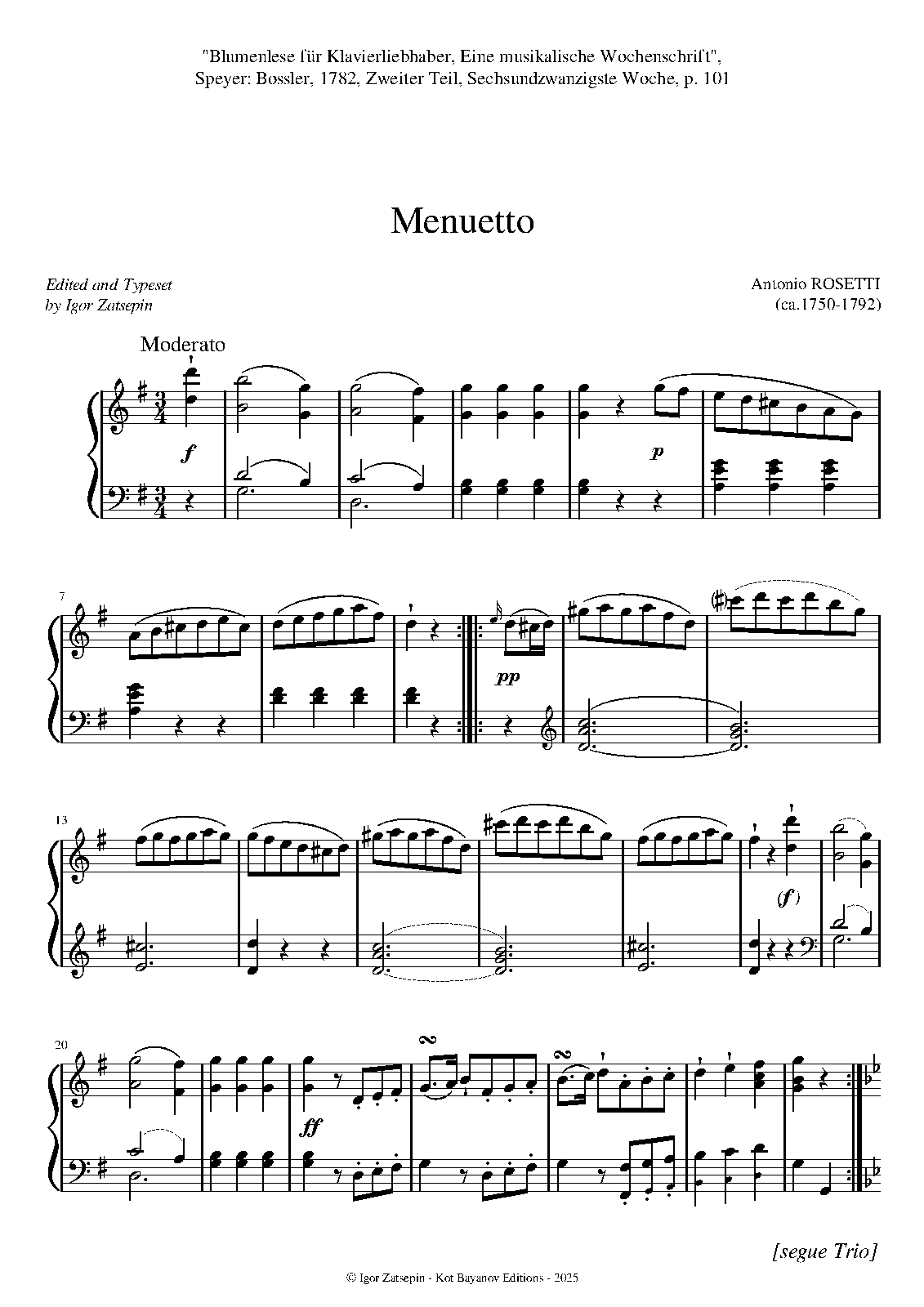 | Work Title | Menuetto in G major, 'Blumenlese...' |