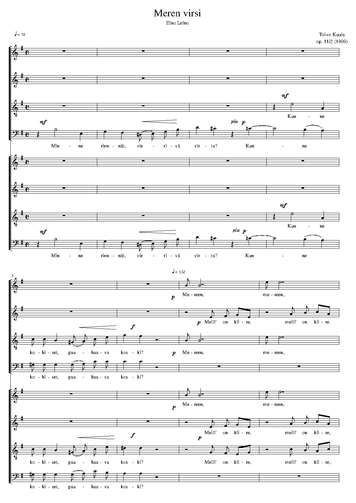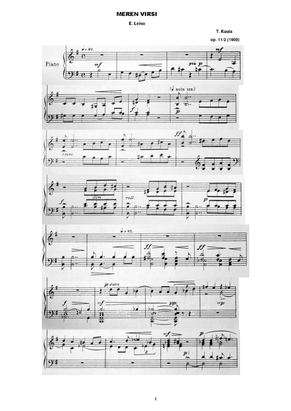 | First Publication. | 1916 - Helsinki: Suomen Laulu, in Ohjelmistoa (No.14, with optional piano reduction) |
