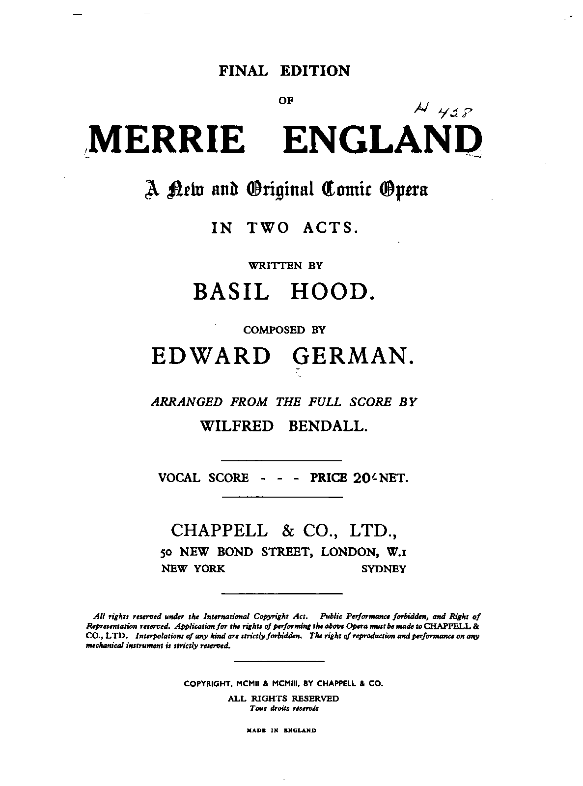 | First Performance. | 1902-04-02 — London: Savoy Theatre |