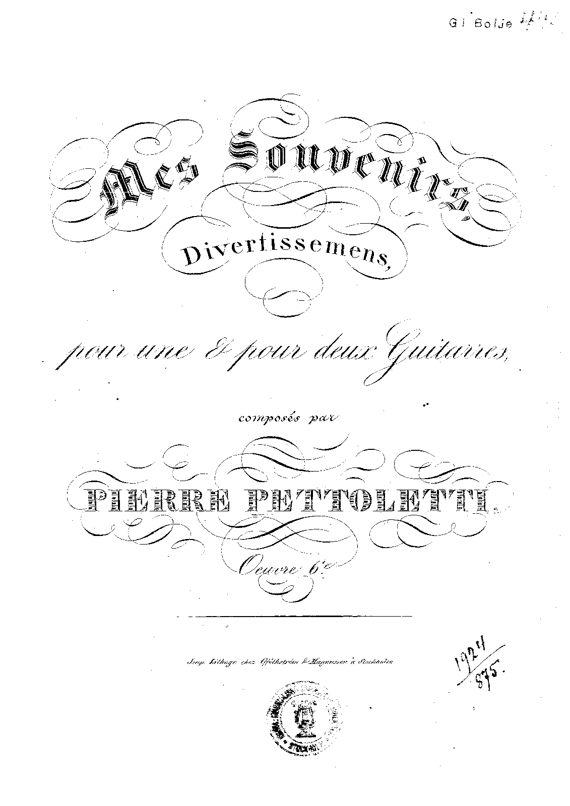 | Alternative. Title | Divertissemens pour une et pour deux guitarre |