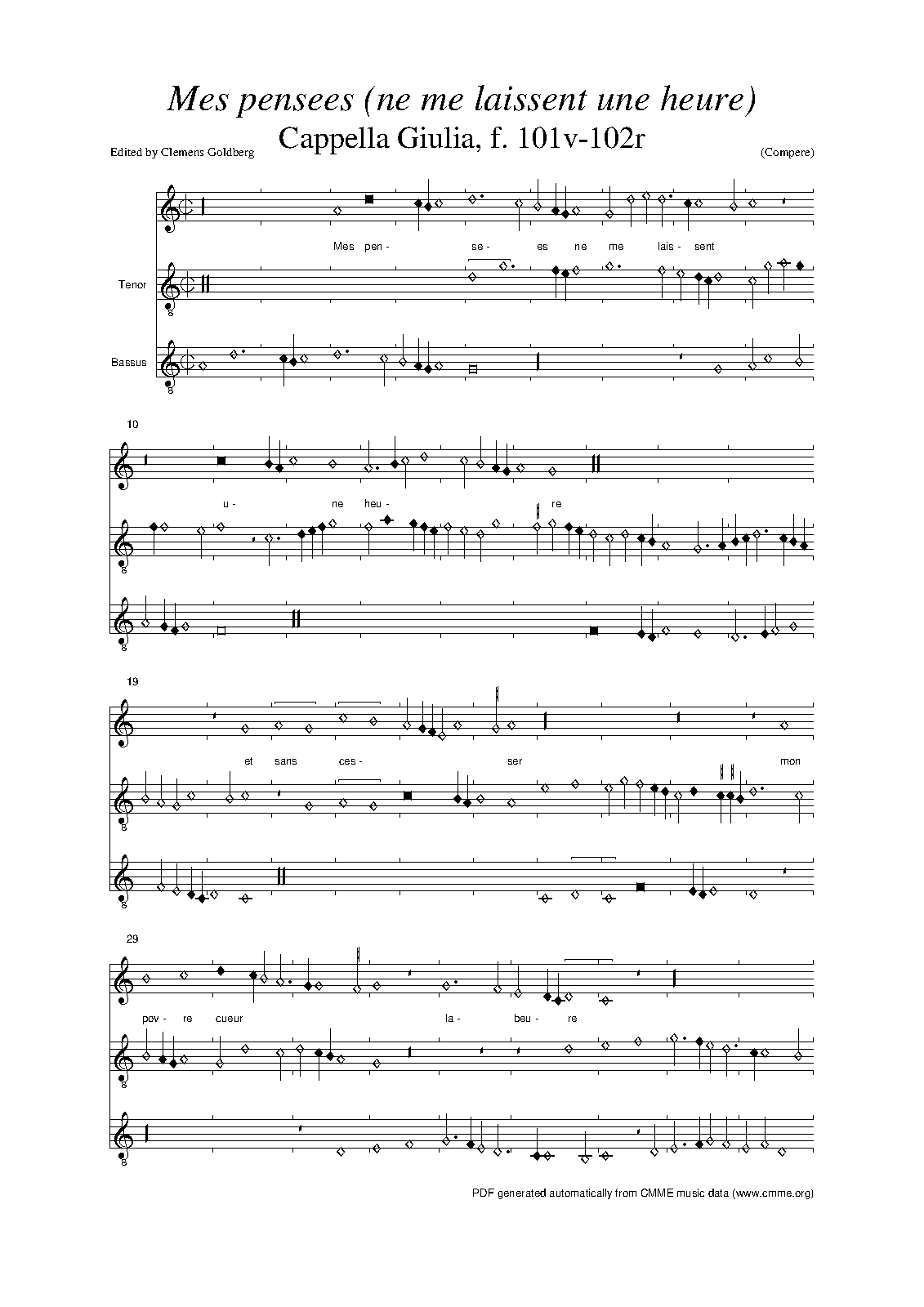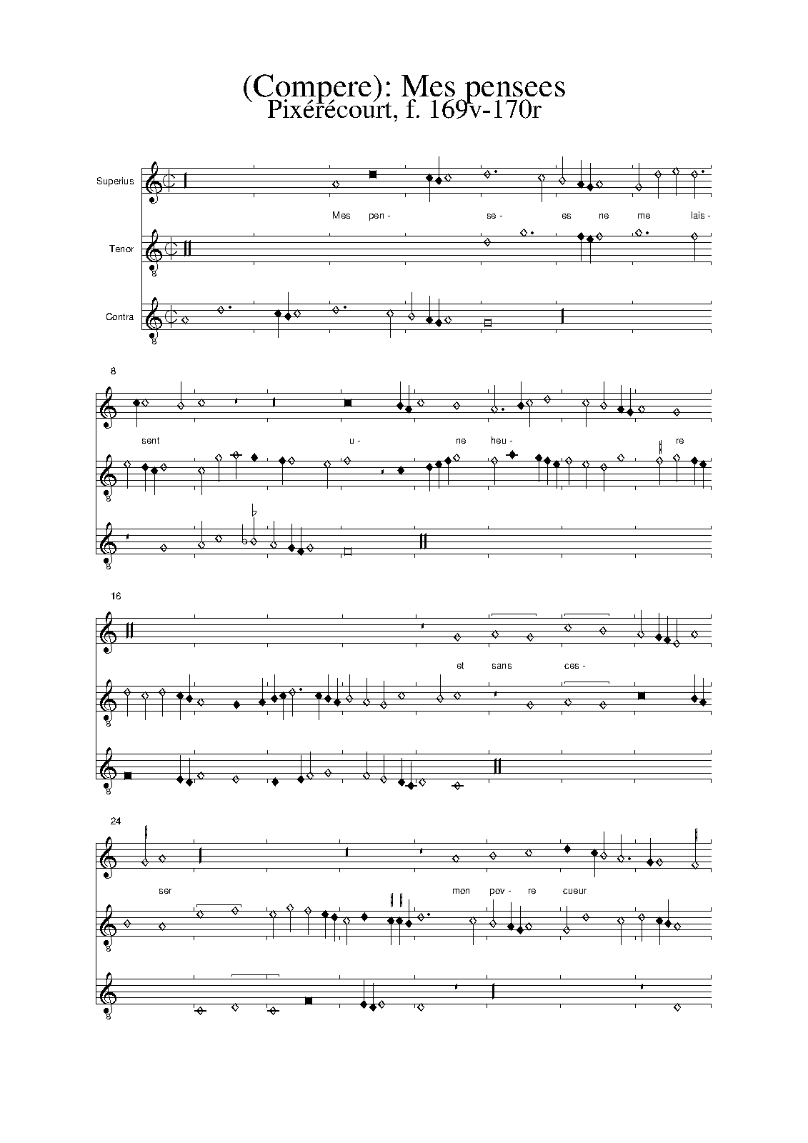 According to Grove Music, this was "presumably used for the lost mass ‘de mes pensees’".