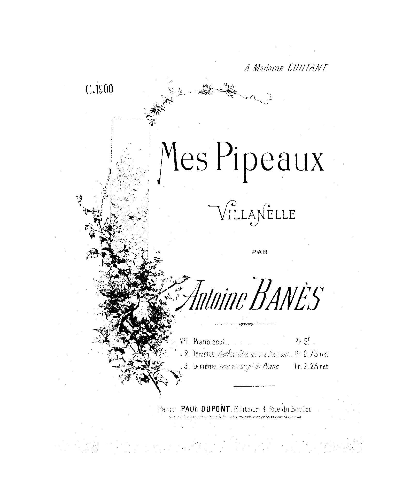 | Copyright Information | Publication noted in the Bibliographie de la France : 89e année, 2e série, Nº 11, 17 Mars 1900, p.155, reg.977. |