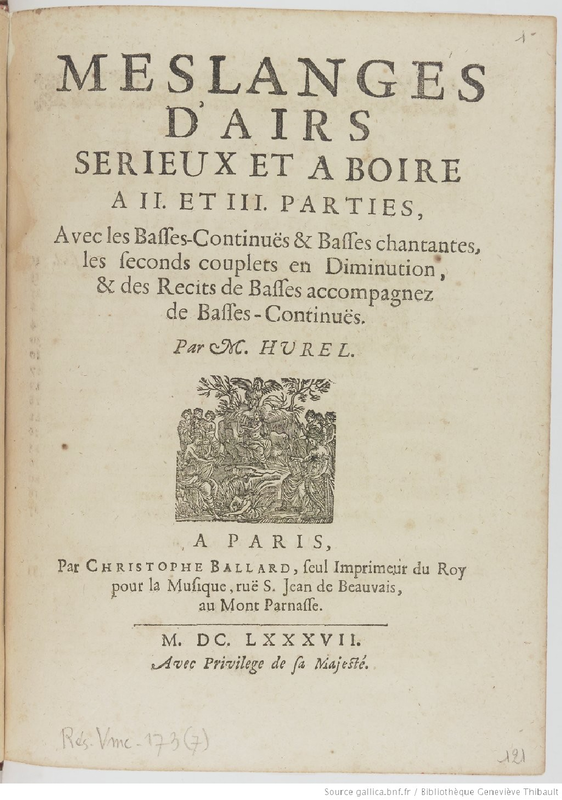 Meslanges d'airs serieux et à boire à II. et III. parties, avec les basses-continues & basses chantantes, les seconds couplets en diminution, & des recits de basses accompagnez de basses-continues