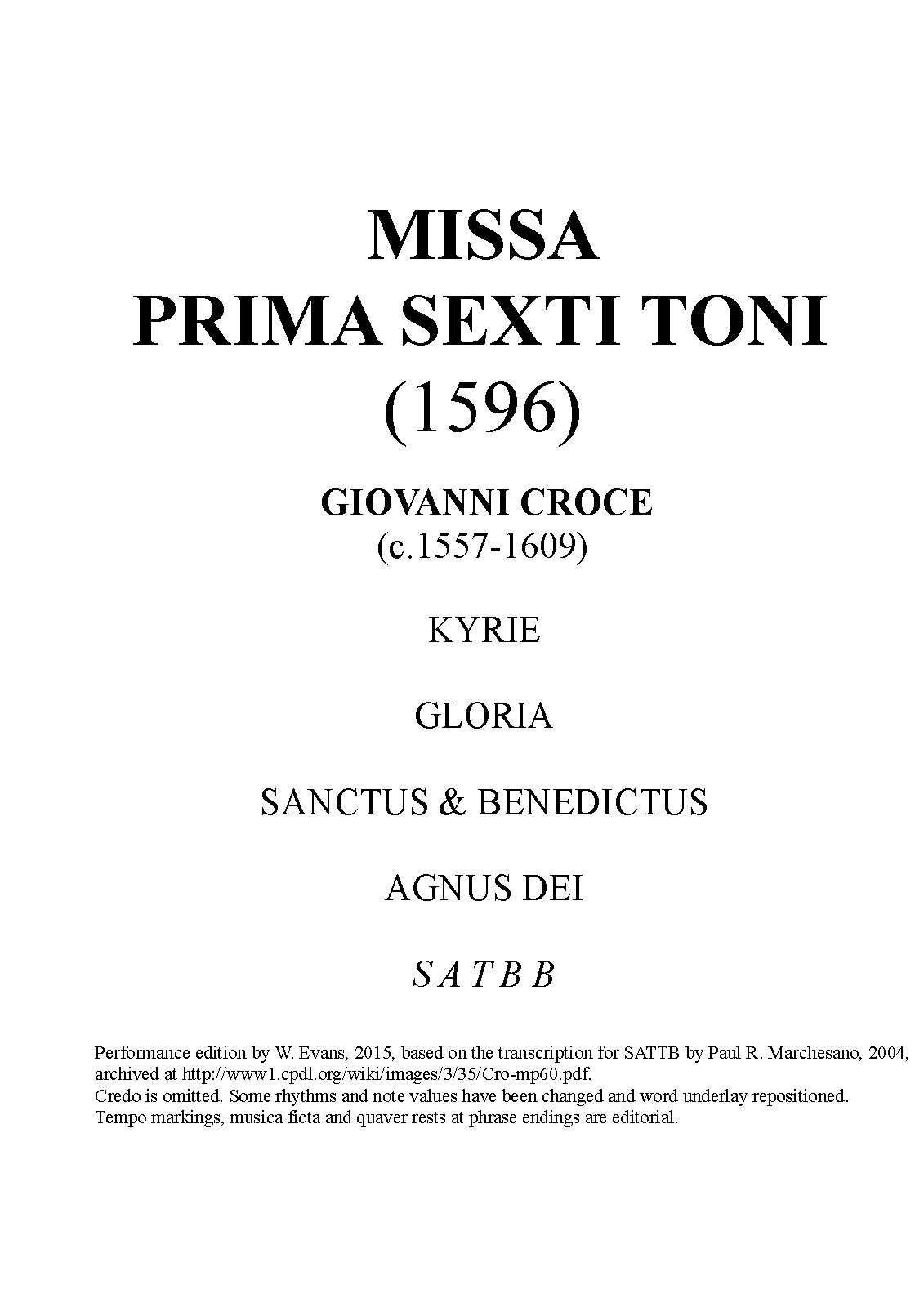 | Work Title | Messa sexti toni |