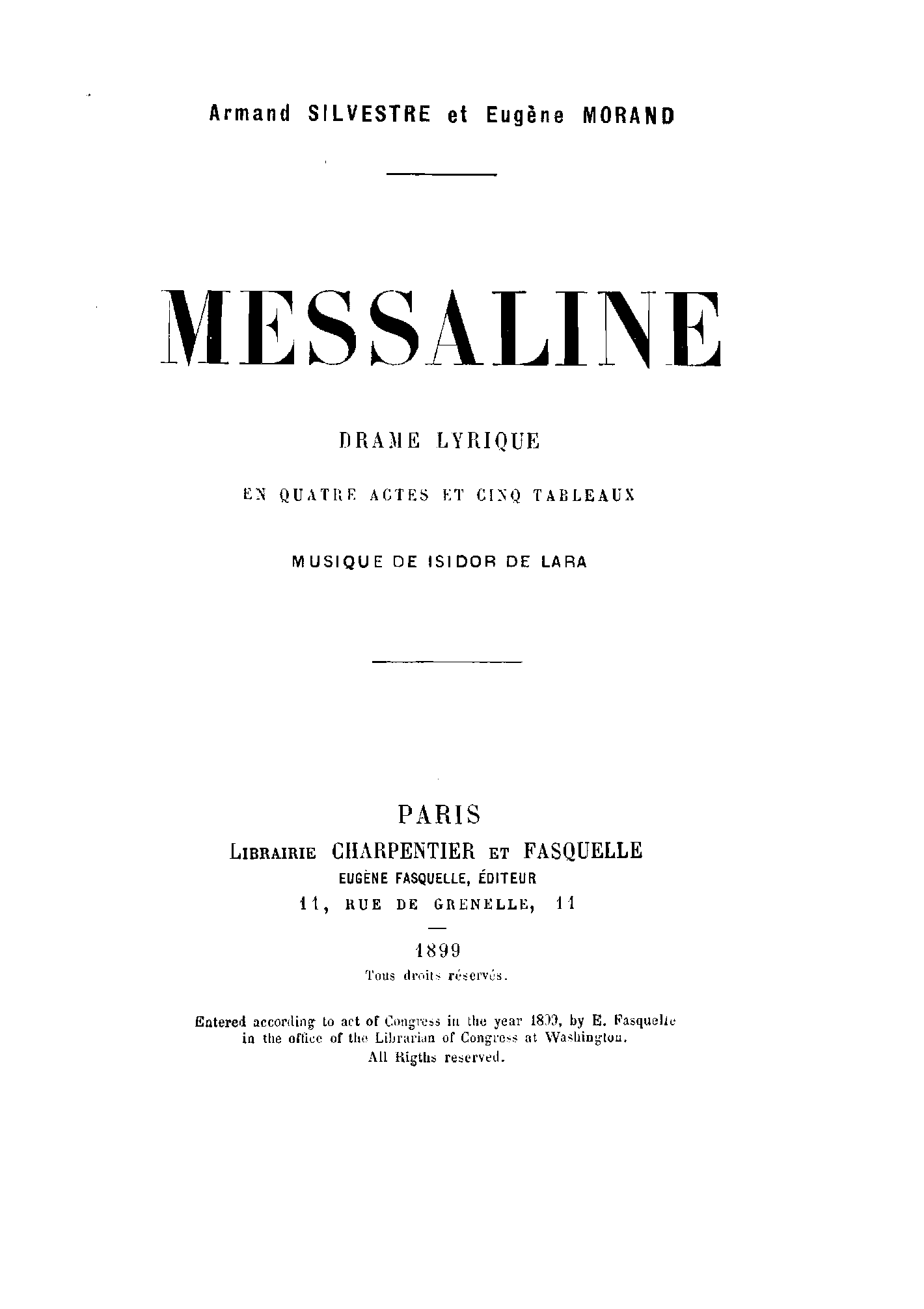 | Librettist | Armand Silvestre (1837-1901) Eugène Morand (1855-1930) |