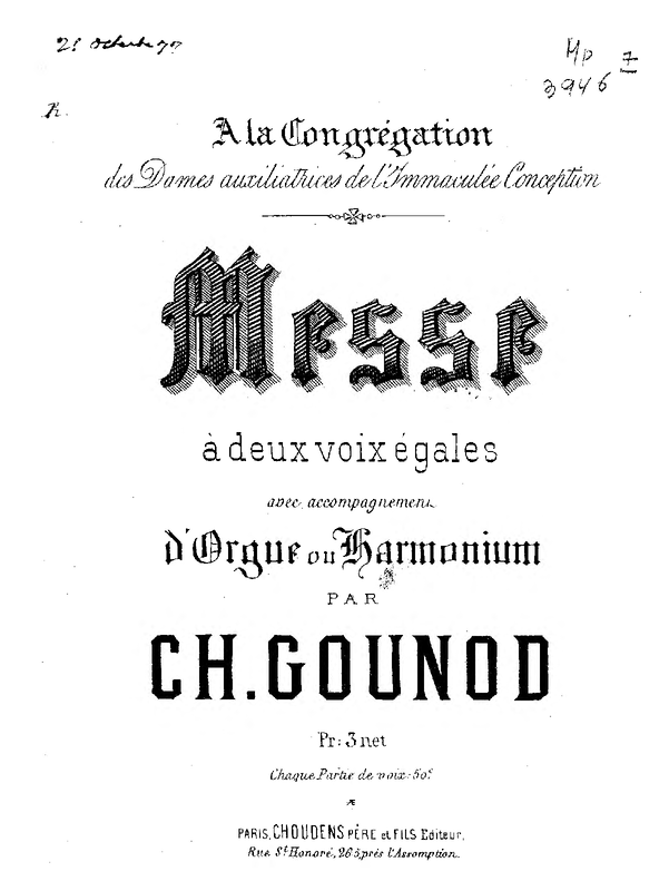 | Dedication | à la Congrégation des Dames auxiliatrices de l'Immaculée Conception |