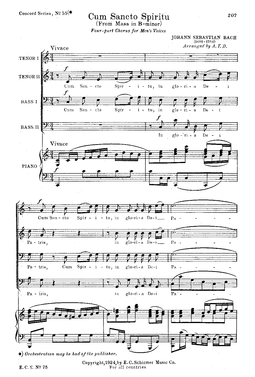 SSATB soli, SSATB chorus 2, 3 (1-2d obda), 0, 2 - 1, 3, timp, strs, bc