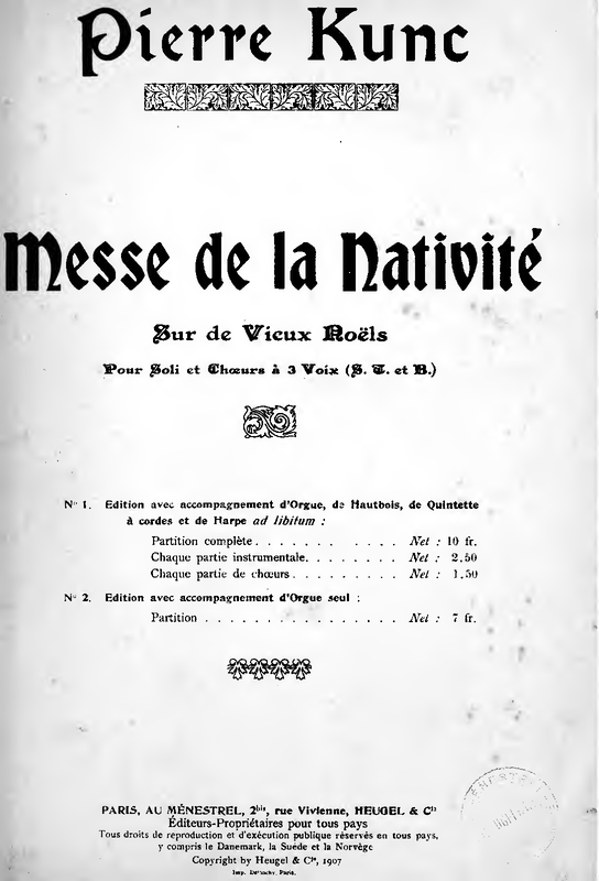 | Genre Categories | Masses; Religious works; For voices, mixed chorus, organ; |