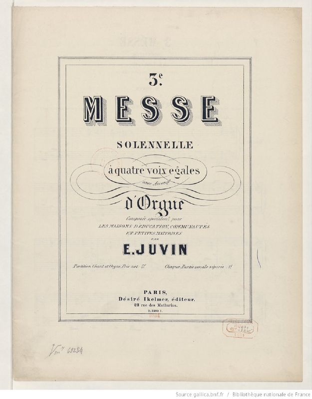 | Work Title | Troisième Messe solennelle à 4 voix égales avec accompagnement d'orgue |