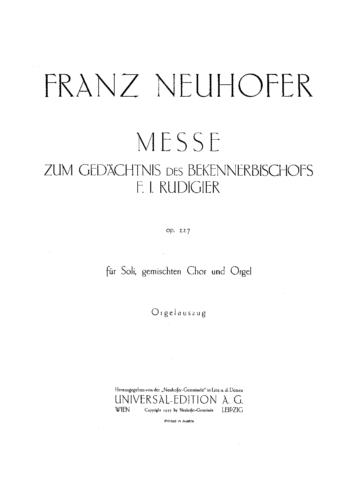 | Work Title | Messe zum Gedächtnis des Bekennerbischofs F. J. Rudigier |