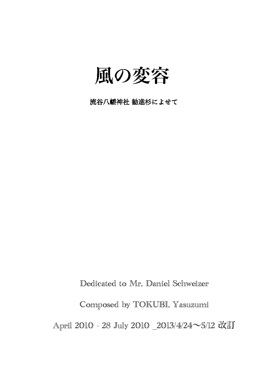 | Work Title | Metamorphoses, Concerto grosso for chamber ensemble |