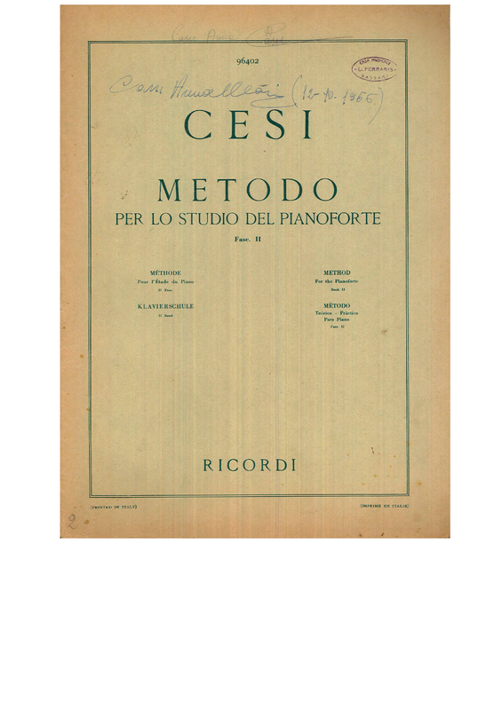 ⇒ 11 more: Fascicolo 2. Esercizi e Scale • Fascicolo 3. Arpeggi • Fascicolo 4. Eguaglianza per le Mani • Fascicolo 5. Note Ribattute • Fascicolo 6. Articolazione del Polso • Fascicolo 7. Tecnicismo delle Ottave • Fascicolo 8. Il Legato • Fascicolo 9. Terze Legate • Fascicolo 10. Doppie Note • Fascicolo 11. Seste • Fascicolo 12. Meccanismo Difficile