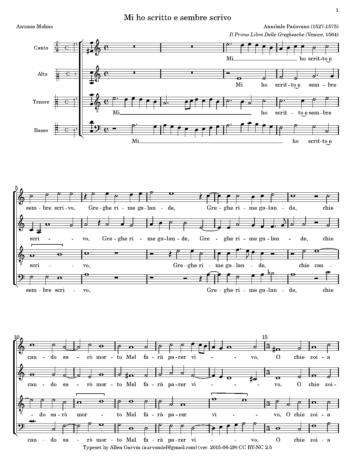 | First Publication | 1564 in Il Primo Libro Delle Greghesche (Gardano press, Venice) |