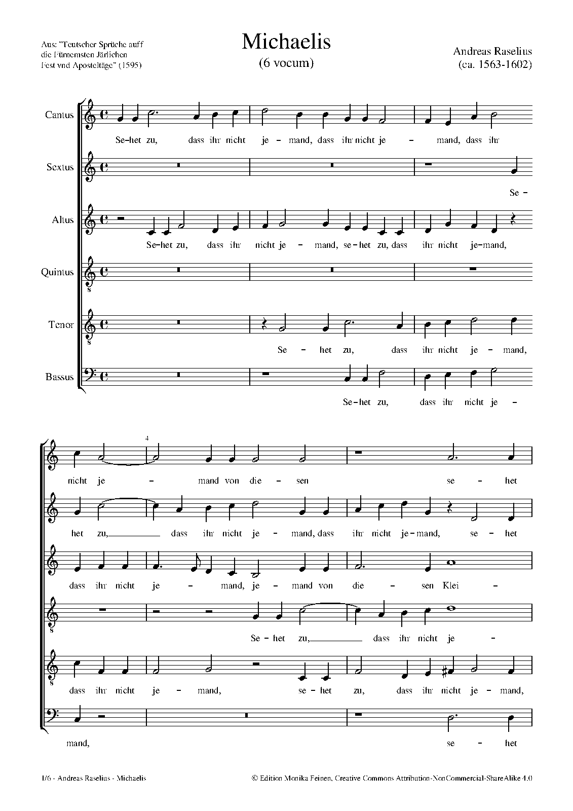 Misc. Notes Modern clefs used, Text in modern spelling. Transcripted from "Denkmäler deutscher Tonkunst - 2. Folge: Denkmäler der Tonkunst in Bayern, 29. und 30. Jahrgang"
