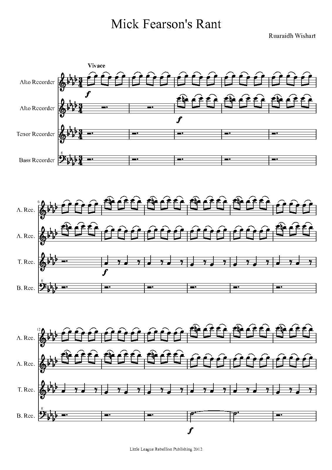 | Instrumentation | Treble Recorder 1, Treble Recorder 2, Tenor Recorder, Bass Recorder |