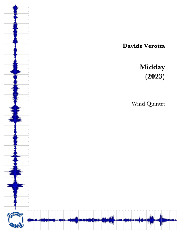 | Extra Information | The first version (2012) is documented in the live recording. The final revision, 2023, is very similar in the first section, but adds a central and final sections, and is almost twice as long. Midday is a wind quintet inspired by the image of a heated midday in a southern Mediterranean summer. The mood is quite ominous. What used to be pleasant in the Anthropocene can acquire dangerous overtones because of climate change. |