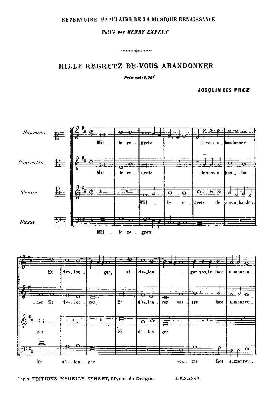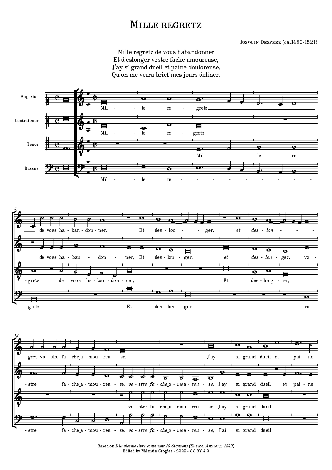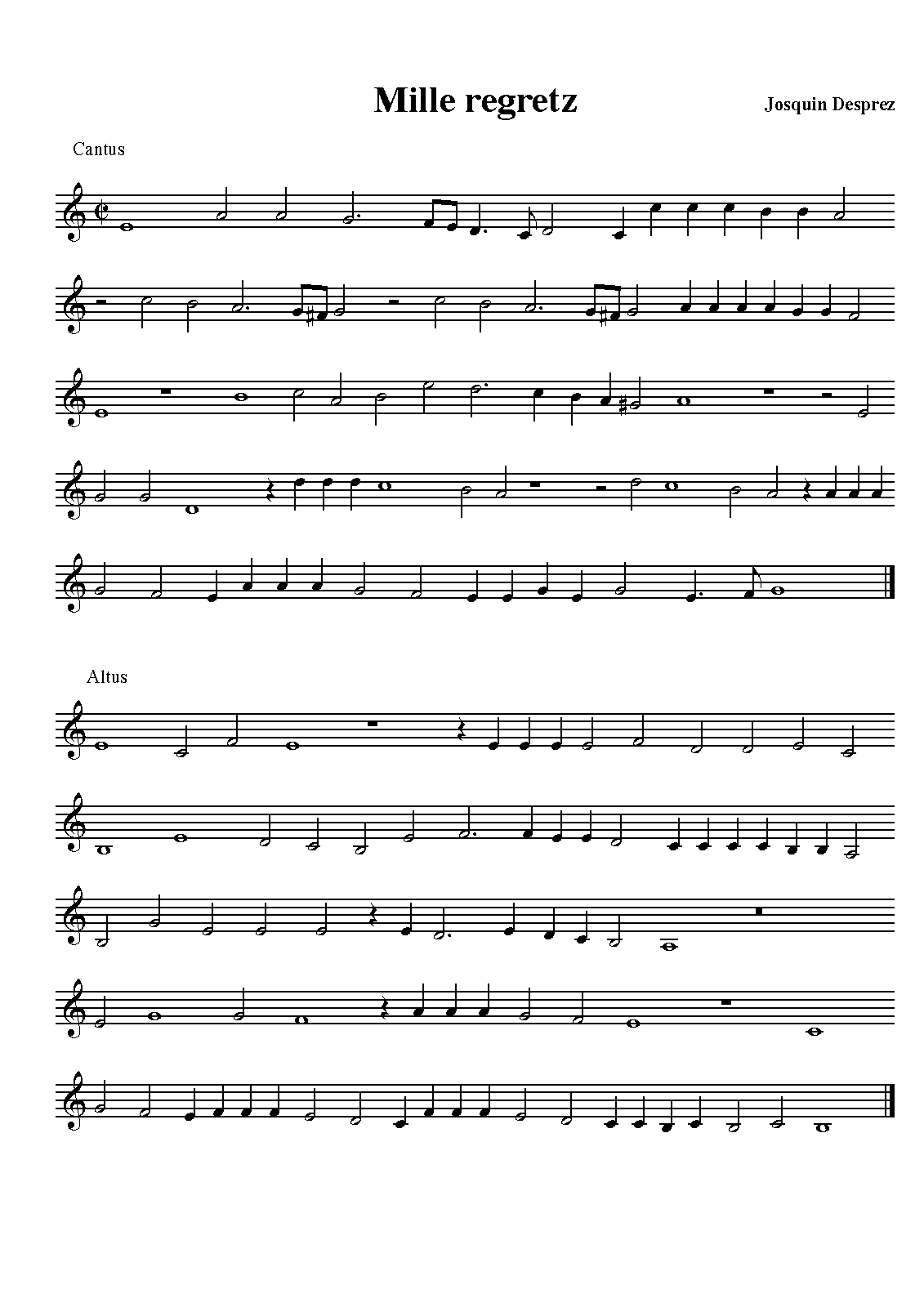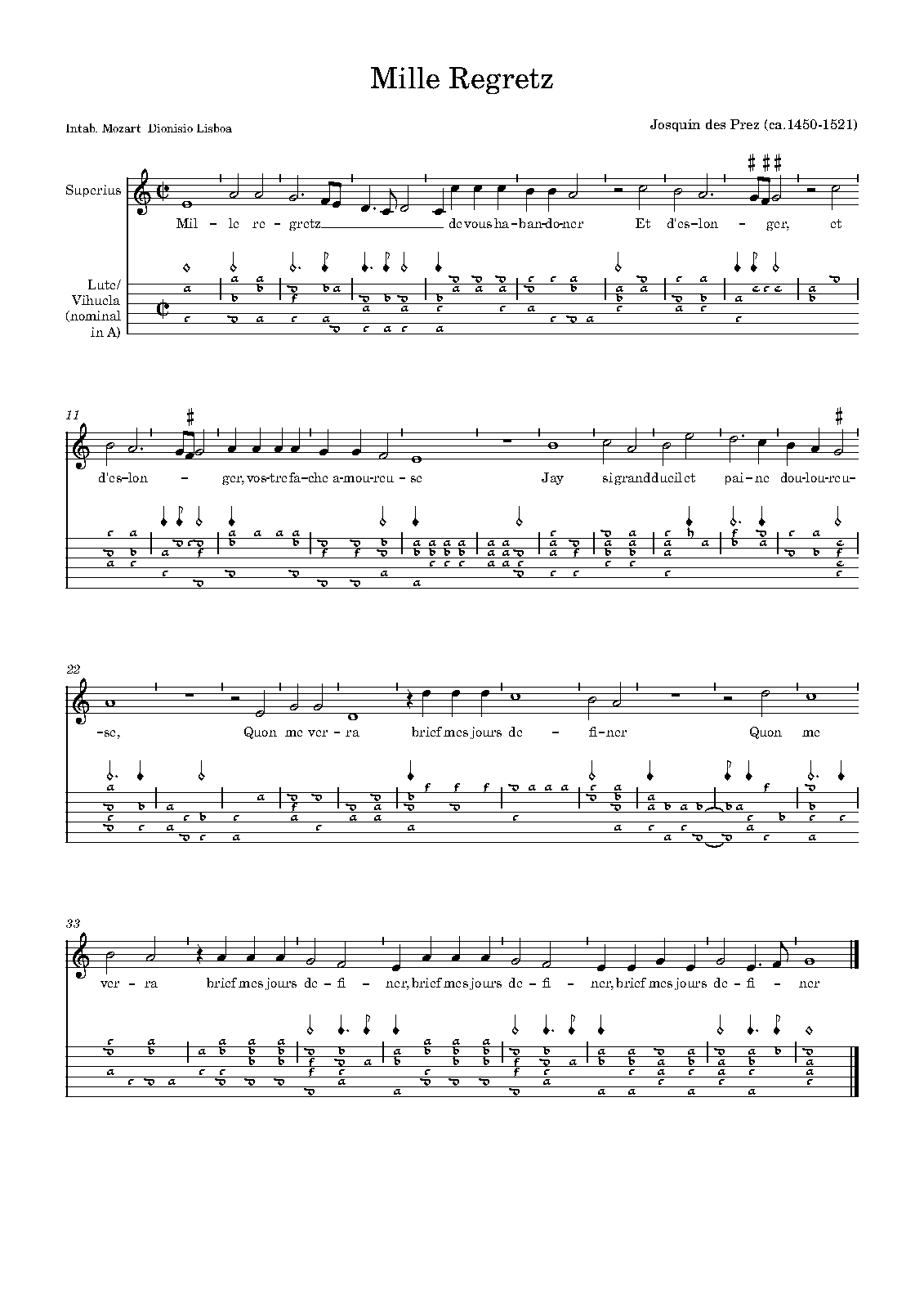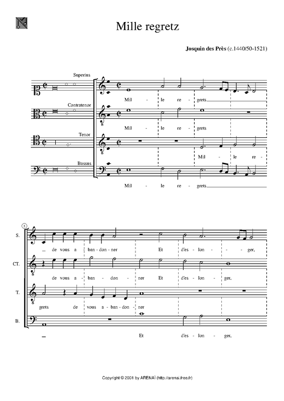 | Work Title | Mille regretz |