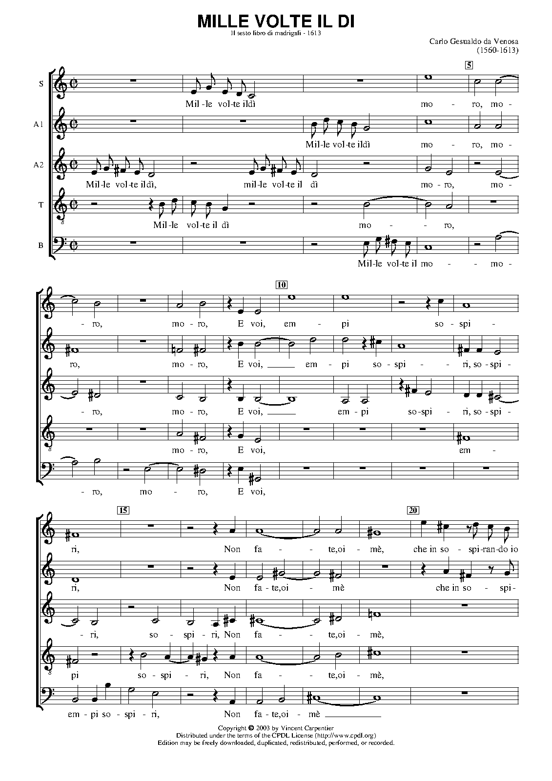| First Publication | 1611 in Madrigals, Libro 6 (No.7) |