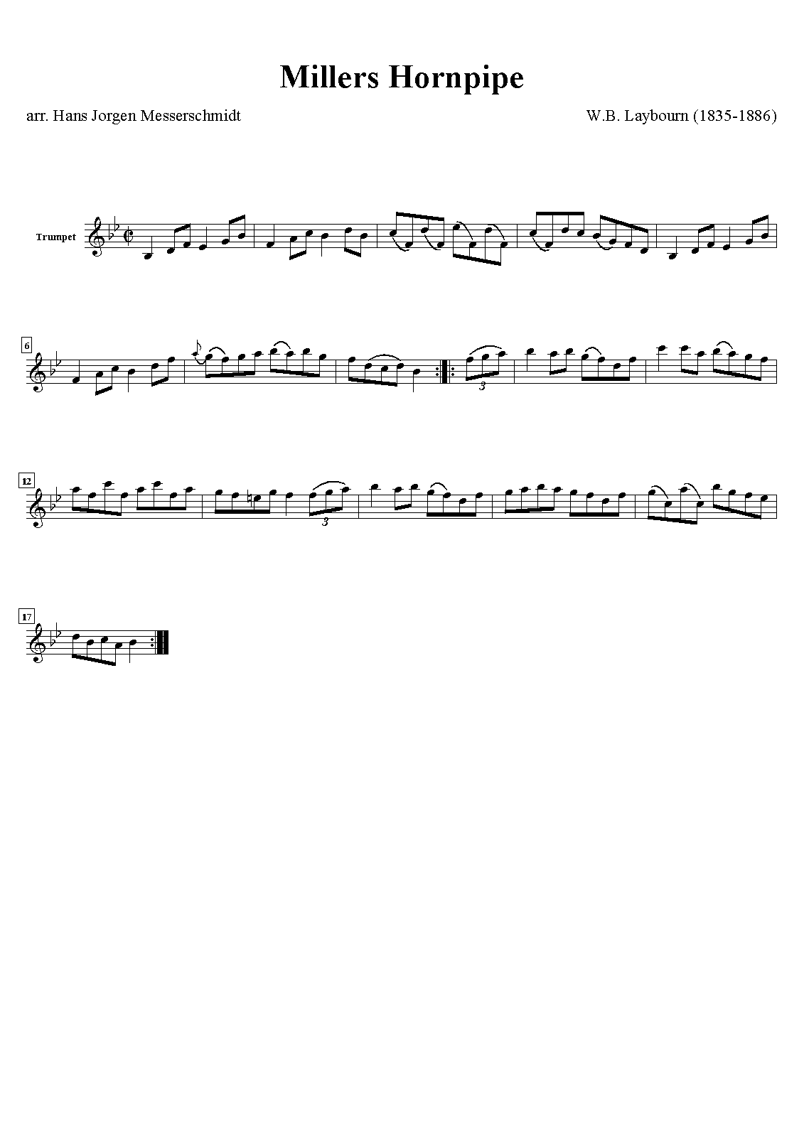 | Extra Information | appears as Miller's Hornpipe, by Zeke Backus in Köhler's Violin Repository of Dance Music, Book 3, p.203 |