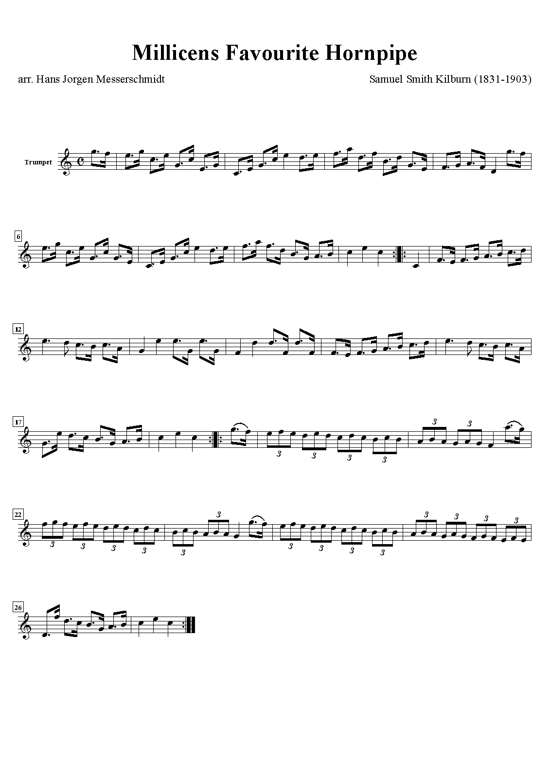 | Alternative. Title | Millicent's Hornpipe; Belfast Hornpipe, Clog des laboureurs, Manchester Hornpipe, Millicen's Favourite, Millicent’s Favourite, Royal Belfast, Sweep's Hornpipe, Great Eastern Hornpipe, Great Western Hornpipe; Millicens Favourite Hornpipe; The Great Western Clog; Royal Belfast |
