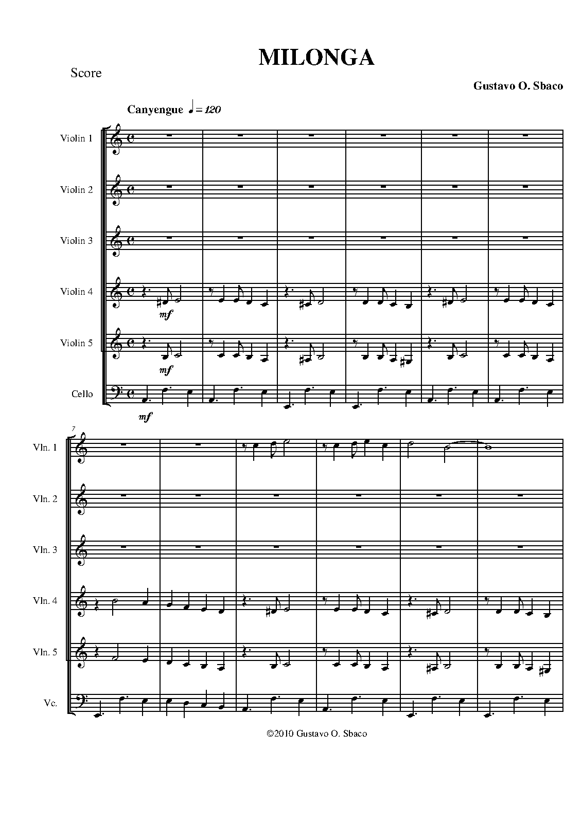 Adecuación de la milonga publicada en 2009 en www.free-scores.com.