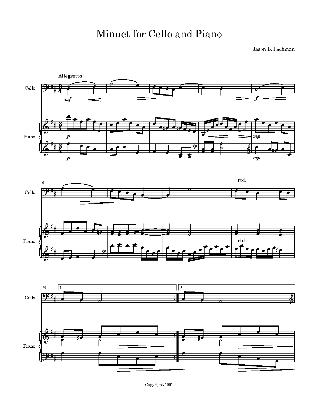 | Work Title | Minuet for Cello and Piano |