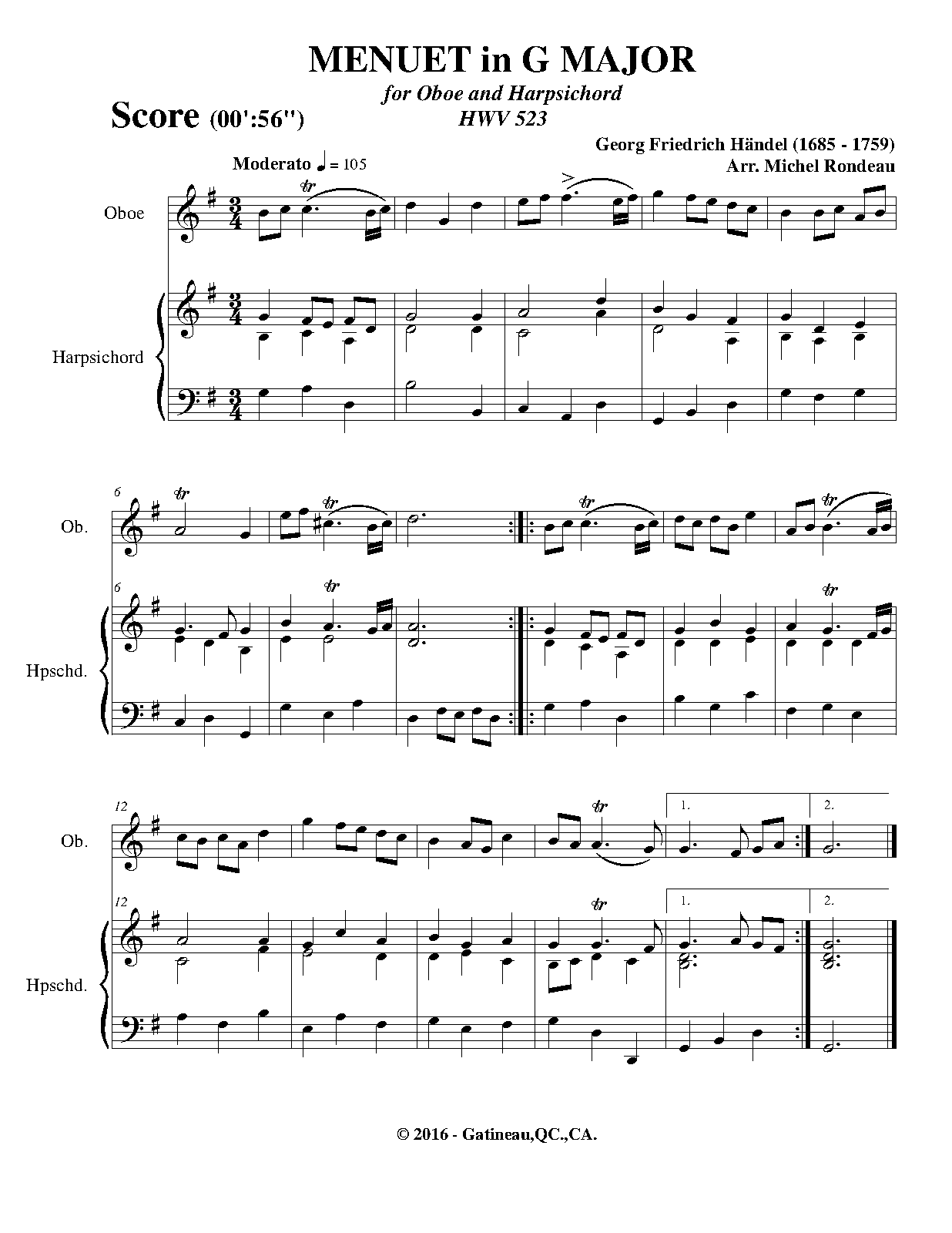 Work Title Minuet in G major, HWV 523