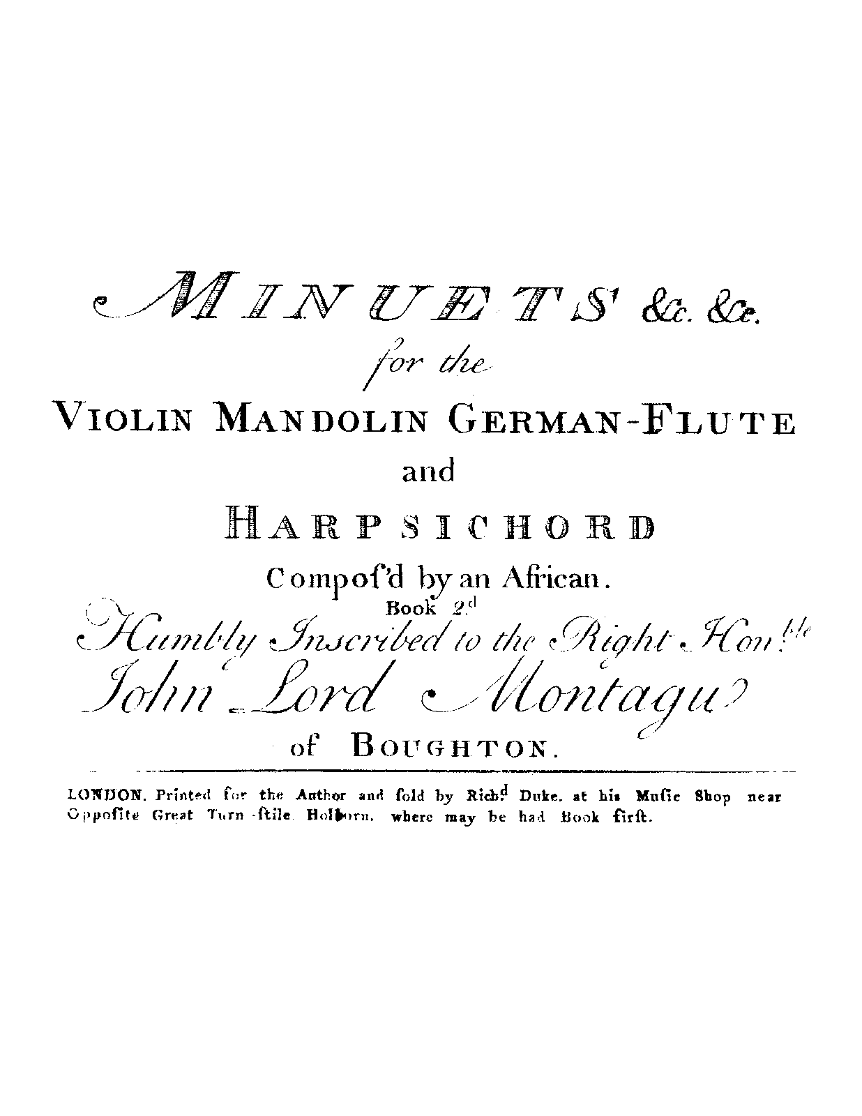 Minuets &c. &c. for the Violin Mandolin German-Flute and Harpsichord Compos'd by an African