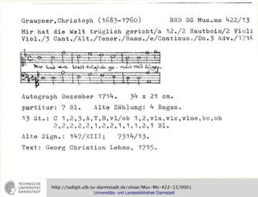 | Opus/Catalogue NumberOp./Cat. No. | GWV 1103/14 |