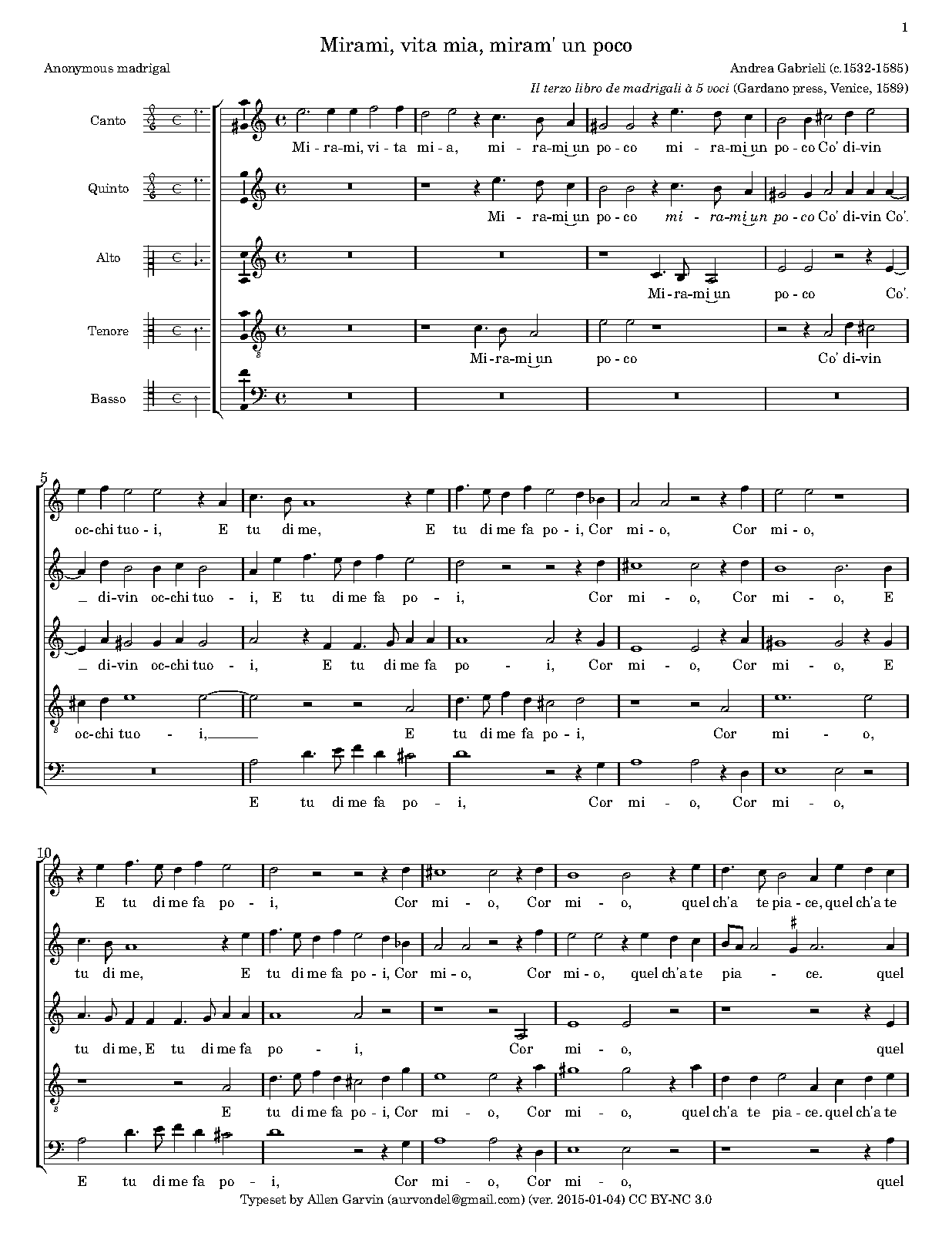| First Publication | 1589 in Il terzo libro de madrigali a 5 (no.11) |