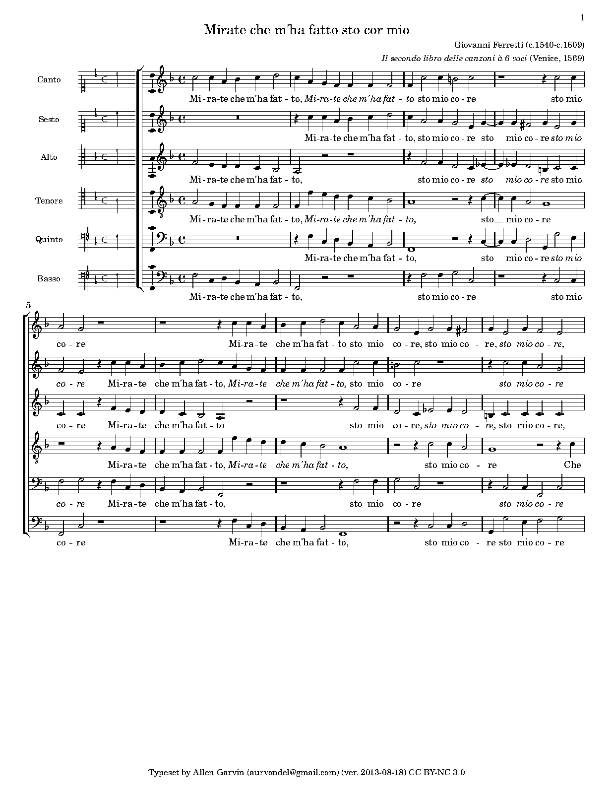 | First Publication | 1575 in Canzoni a 6 voci, Libro 2 (No.5) |