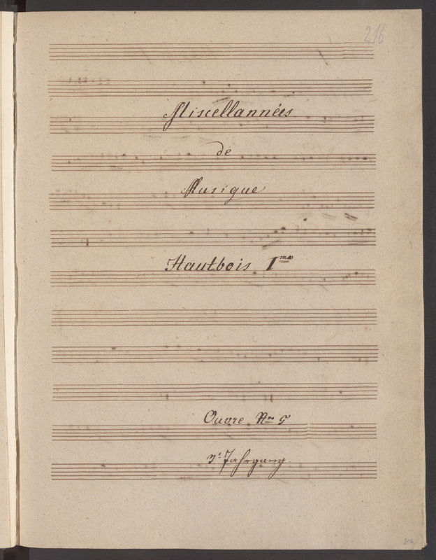 | Alternative. Title | Miscellanées de Musique arrangées pour Deux Hautbois, Deux Clarinettes, Deux Cors, Deux Bassons, à volontée un grand Basson & une Trompette par Joseph Triebensée, maitre de chapelle au service de son Altesse serenissime le Prince de Lichtenstein. [Harmoniemusik.] 3. Jahrgang, Oeuvre 4, 5, 6 |