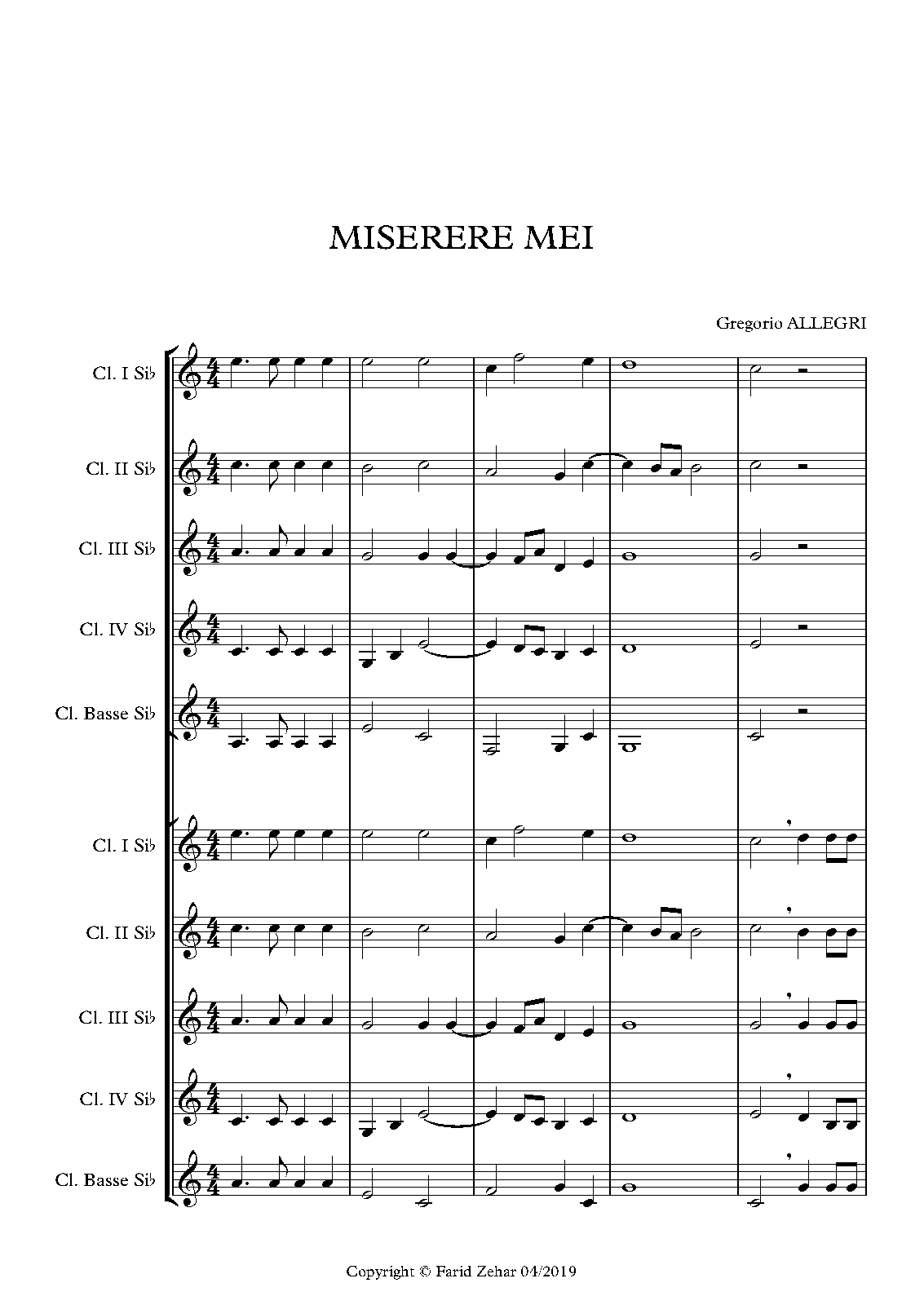 Miserere von Allegri (mit allen Verzierungen; so wie es in der Heiligen Messe zu Rom u der Capella Sistina gesungen wird)