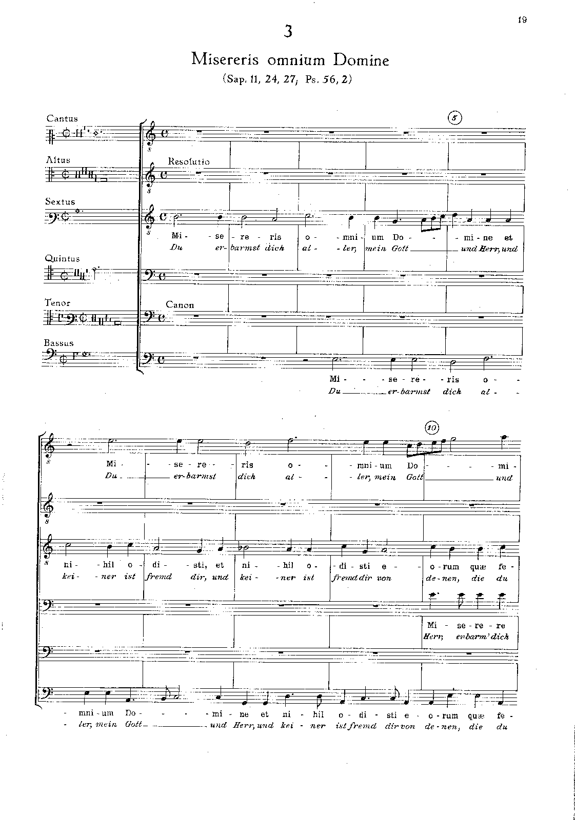 Extra Information The Cantus, Sextus, Bassus parts have the complete text for "Misereris omnium Domine" while the Quintus haa a Canon (rule) for itself and only have the text: "Miserere mei Deus". The Altus voice is following an imitative Canon by the fifth over the Tenore voice; both voices have a different text from the other four: "Ne reminiscaris Domine..."