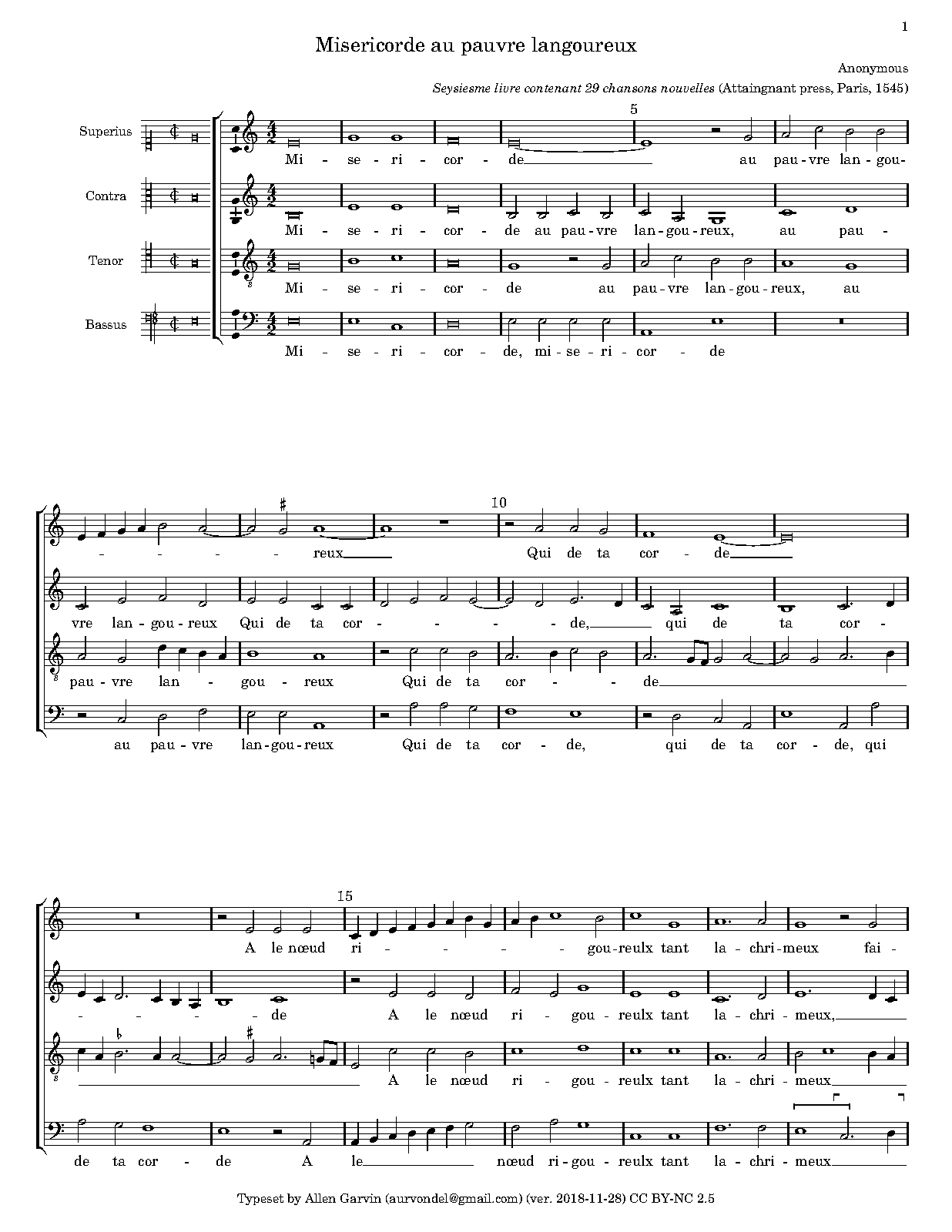 First Publication. 1545 in 29 Chansons nouvelles, Livre 16 (Attaingnant, Pierre)