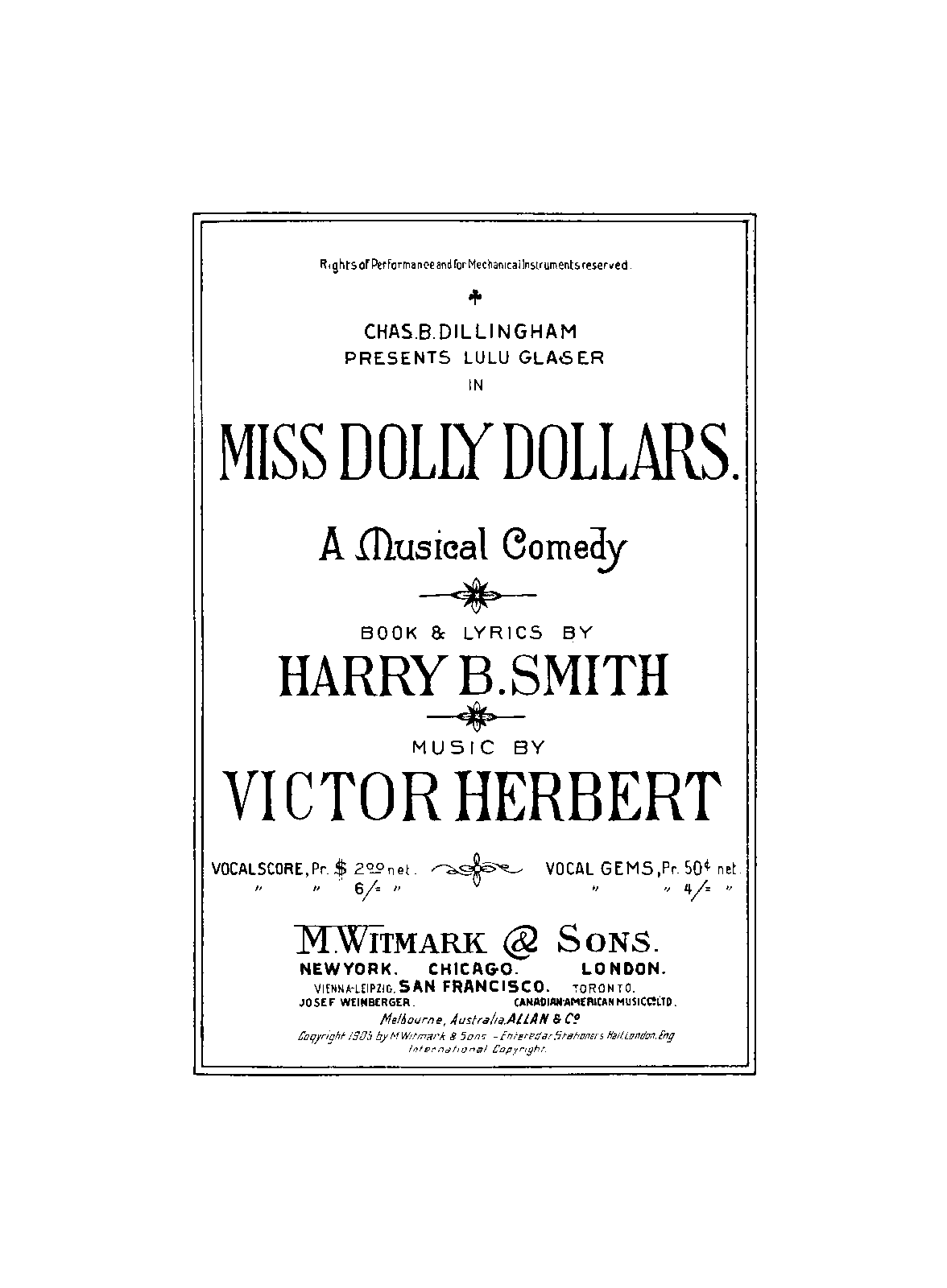 | First Publication | 1905 – New York: M. Witmark & Sons |