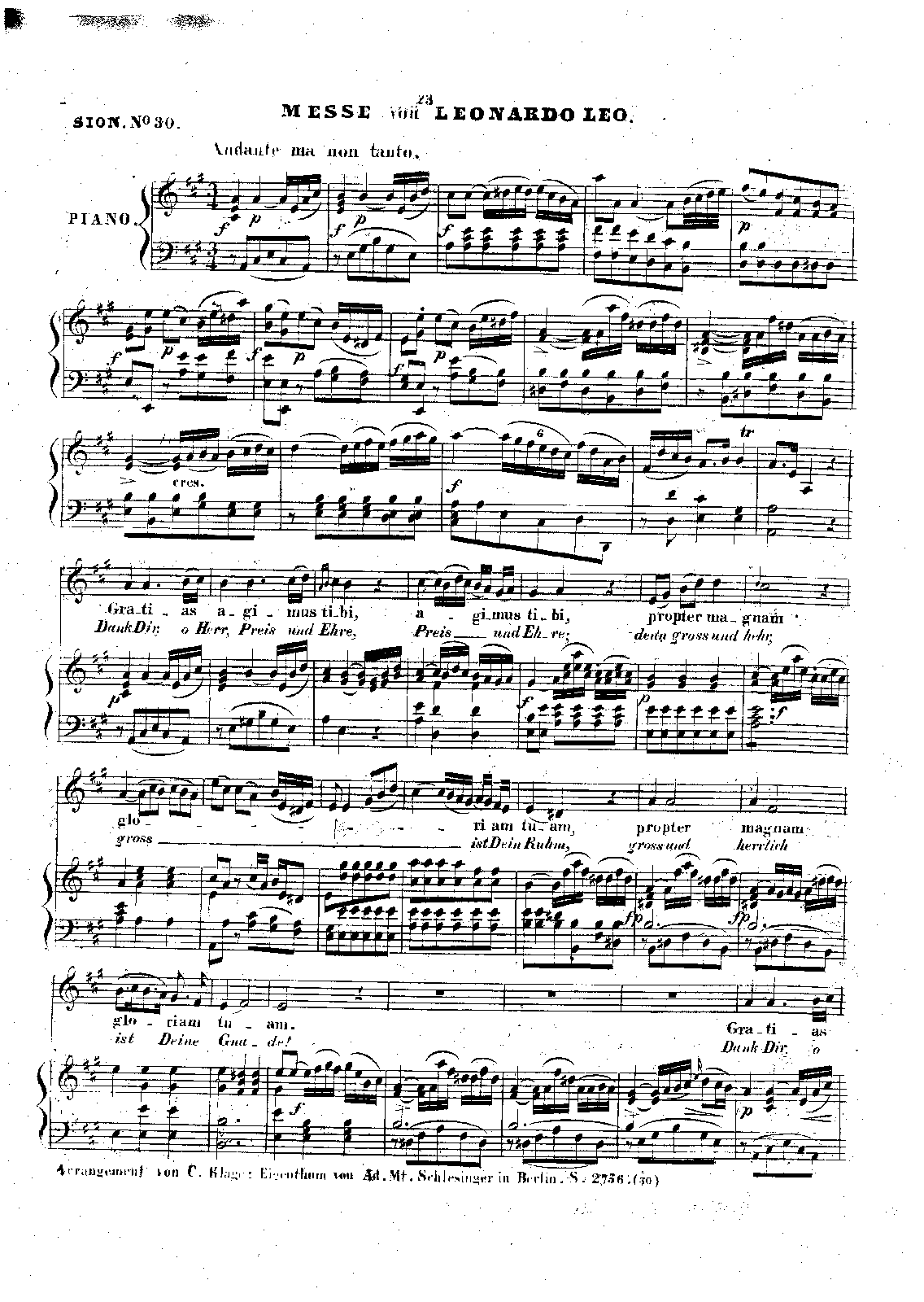 - Or, it could be one of Leo's sacred arias in Italian that has been arranged by the editor (Carl Klage) and retexted in Latin and German. There seems to be no evidence of an extant mass setting by Leonardo Leo... PML