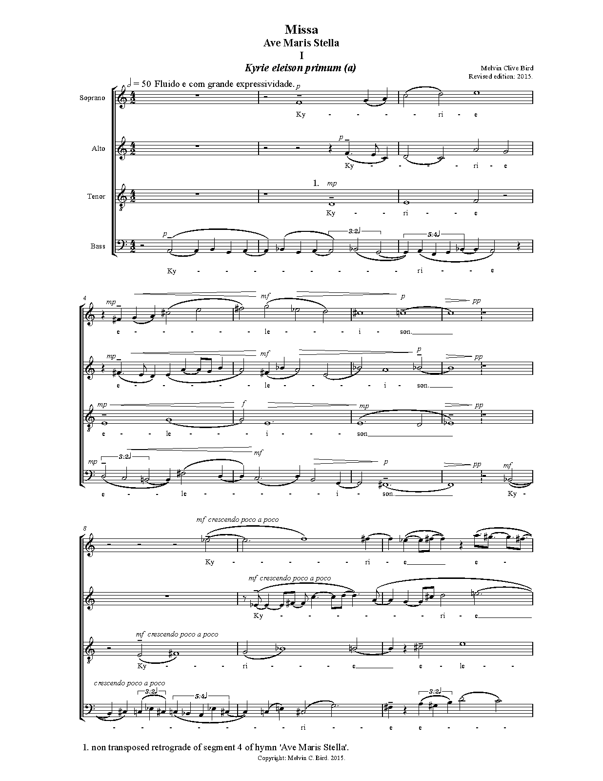 Melvin Bird has asserted his right under the Copyright, Designs and Patents Act, 1988, to be identified as the composer of this work. Please contact the composer for further information. The composer welcomes any performances and recordings. melvin.bird@hotmail.com