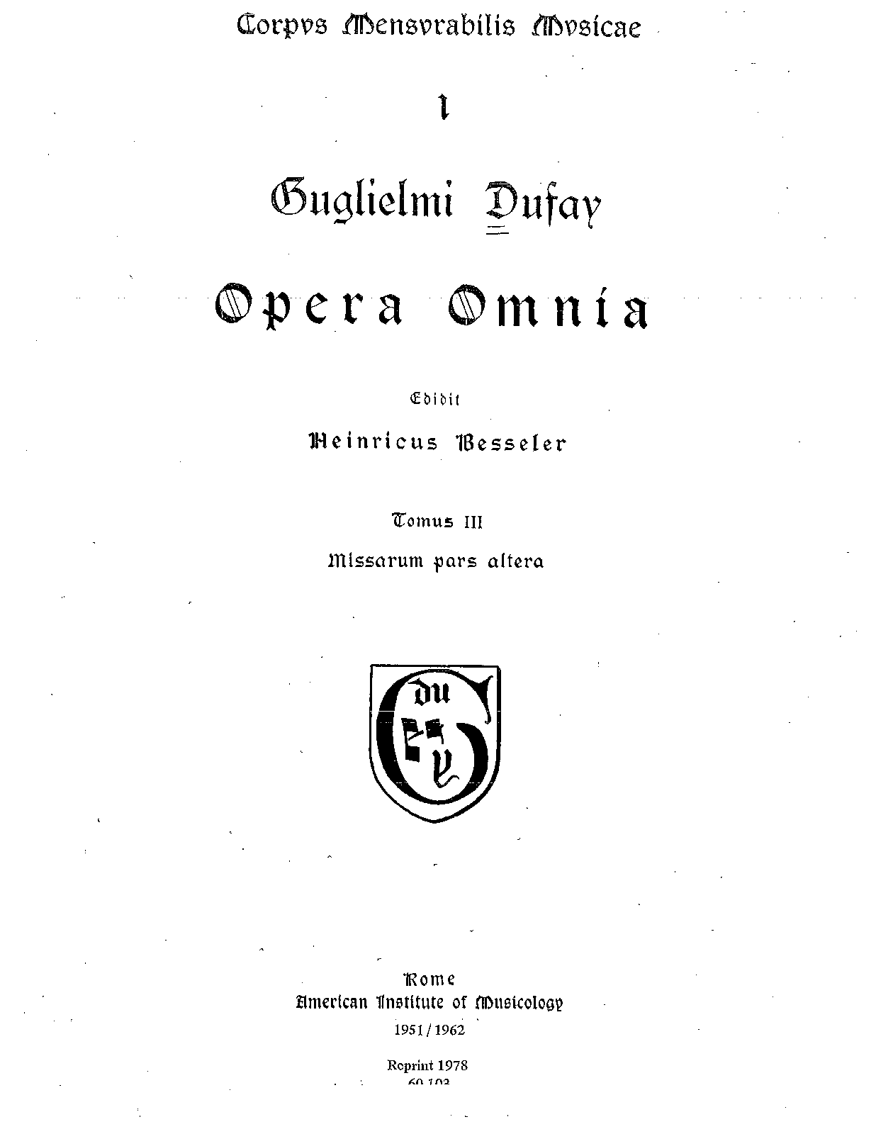 Rome: American Institute of Musicology, 1951/1962. Plate CMM 1.