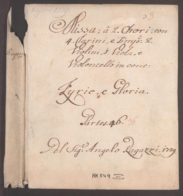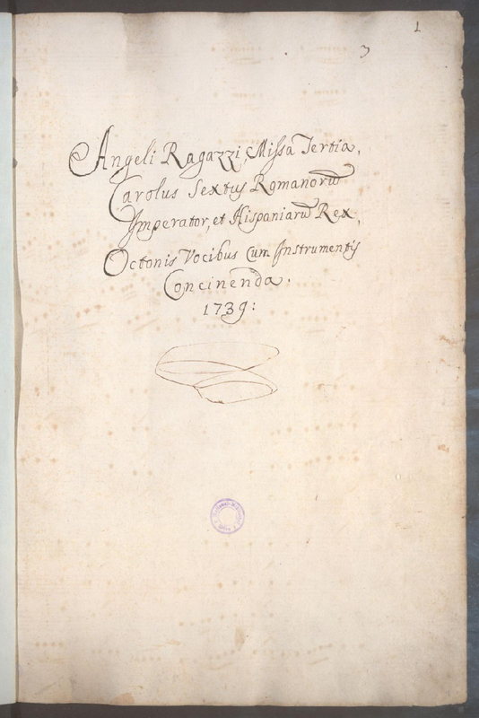 | Alternative. Title | Angeli Ragazzi, Missa Tertia, Carolus Sextus Romanorum Imperator, et Hispaniarum Rex, Octonis Vocibus cum Instrumentis concinenda. 1739 |