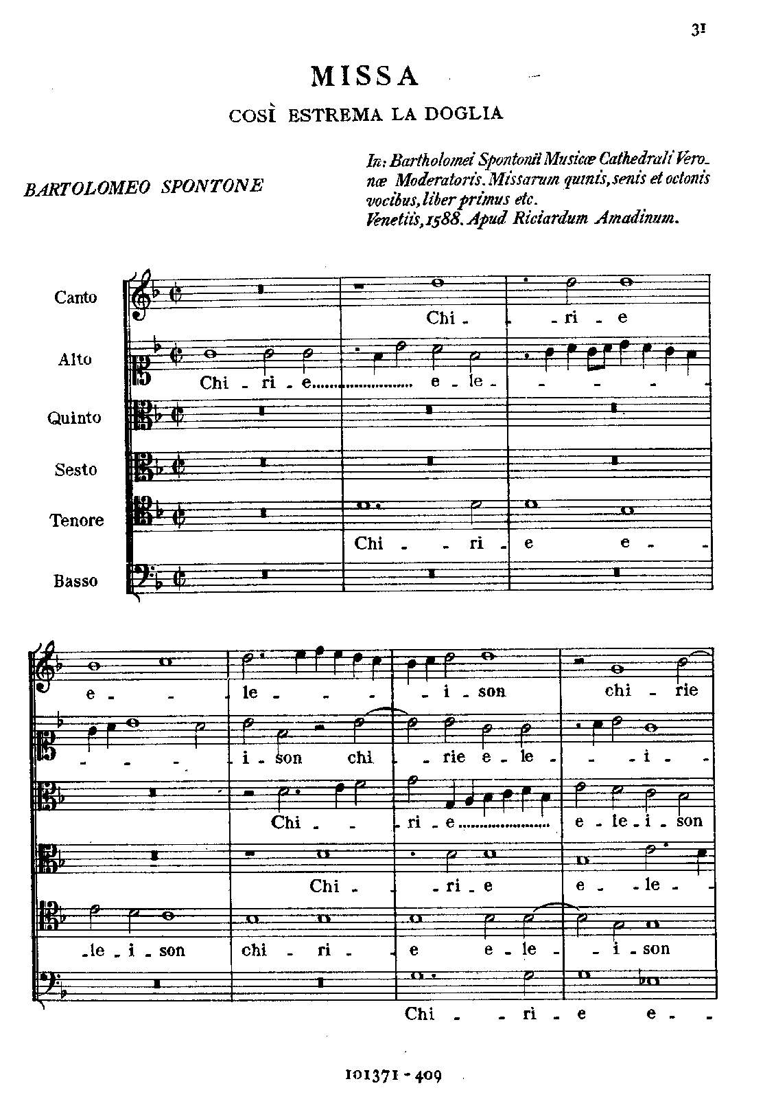 | First Publication | 1588 in Missarum quinis, senis, et octonis vocibus, liber primus (No.2) |