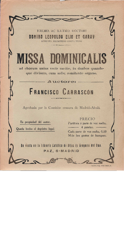 | Dedication | Al Excmo. e Illmo. Dr. D. Leopoldo Eijo Garay, Arzobispo de Madrid-Alcalá |
