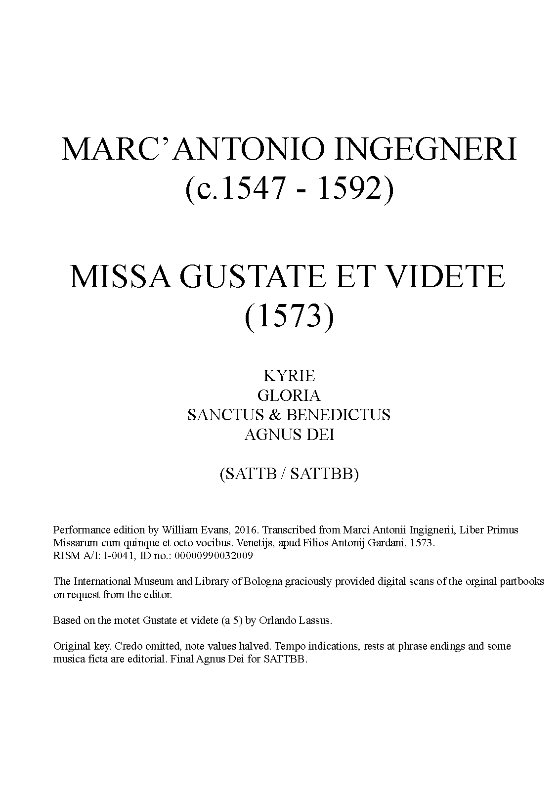 | Genre Categories | Masses; Religious works; For 5 voices; |