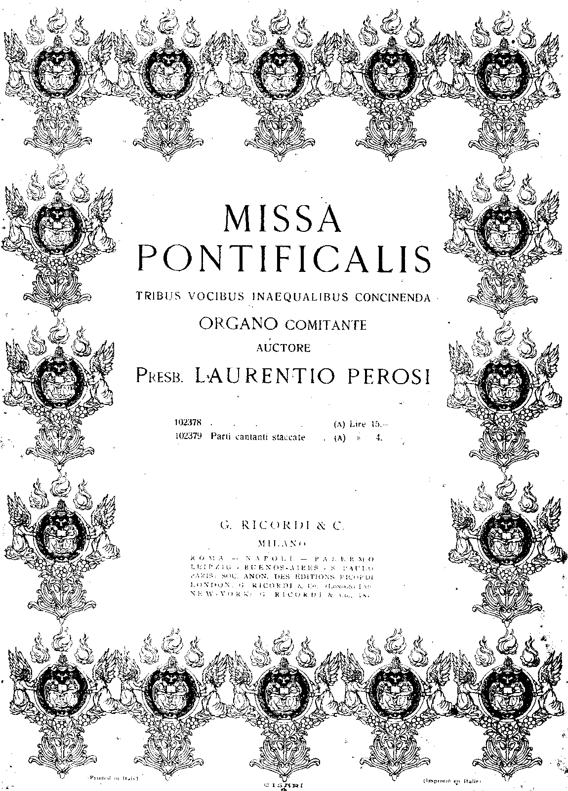 Alternative. Title Missa Pontificalis (prima) tribus vocibus inequalis concinenda organo comitante