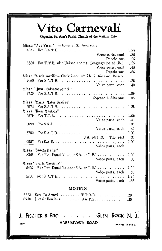 | Genre Categories | Masses; Religious works; For mixed chorus, organ; |