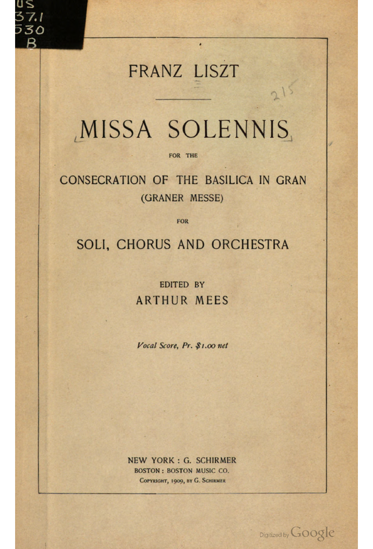 (A version of the mass - reduced by Joseph Ács for similar chamber forces - was published in 2007. It seems Meluzzi's reduction remains unpublished. Liszt and Meluzzi met in 1861, so it might be regarded as authorized?)